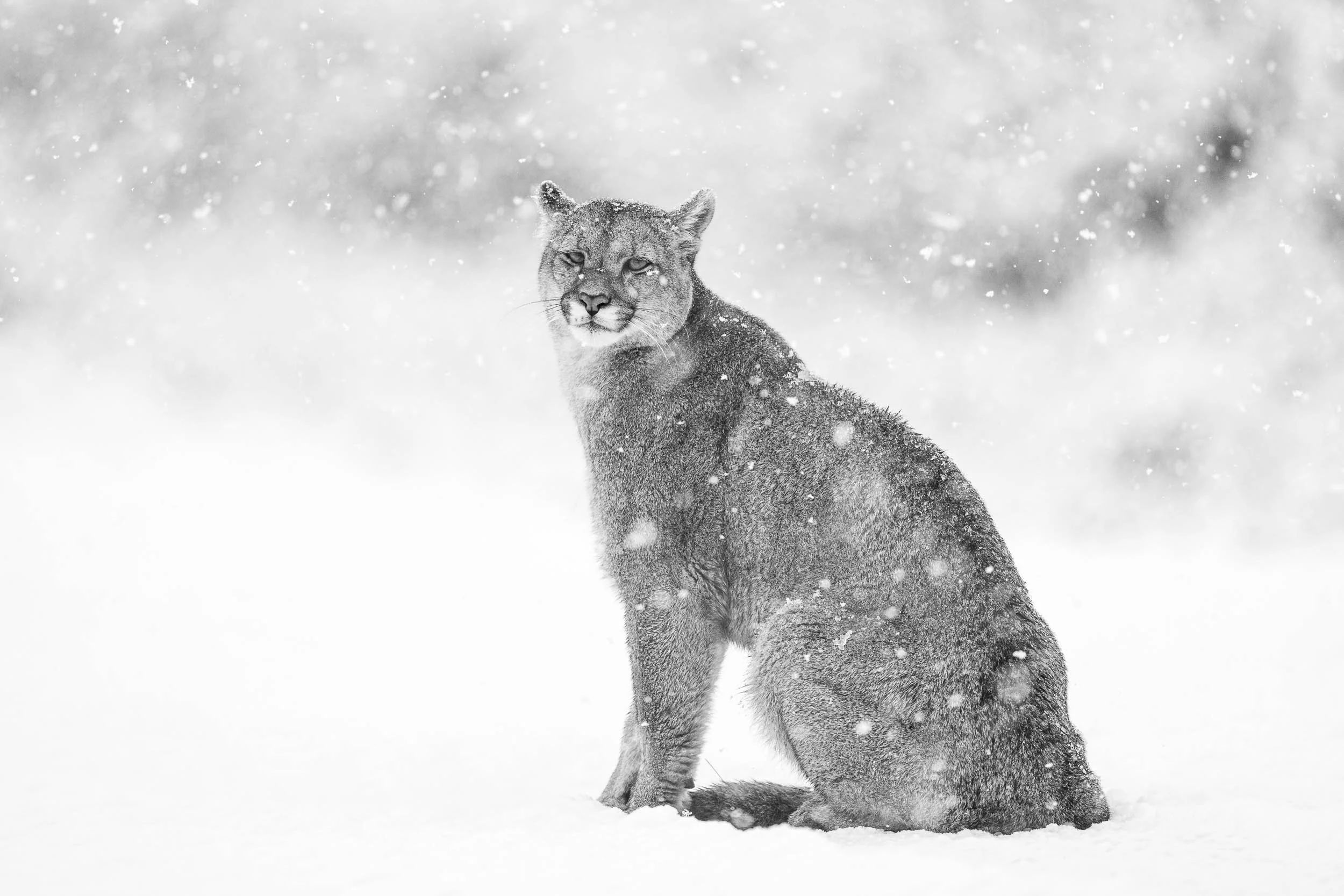 The unseasonal snow storm transformed the Torres del Paine National Park, returning it to winter and making for spectacular conditions for photography. Lying on the cold ground with snow falling, the female puma walked straight towards me. She was not alone, somewhere behind out of sight, a male puma was following her intently, hoping to mate with her. However, this intruder was not the dominant large male known as “Dark”, he would find her later. The approach of the female puma had triggered my body’s fight-or-flight response, the automatic reaction our brain’s trigger when we face perceived danger. This primitive survival mechanism floods our bodies with adrenaline and cortisol, causing our heart and breathing rates to increase and our muscles to tense, preparing us to either confront or flee from danger. Whilst this reaction is designed to protect us, its effects are not conducive to good photography. The local guide I was working with had briefed me to stay still and not to move, the puma would not attack as she did not see me as a threat nor as food. By controlling my breathing I brought the flight-or-flight response under control, relaxing my body, enabling me to photograph the female puma as she continued to walk towards me before she stopped and sat down in the snow. This was the my first encounter with a wild puma, whilst I had many more during my time in Torres-del-Paine, this was the most memorable.